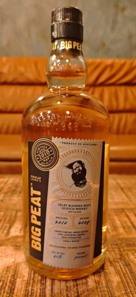 You can’t go wrong with Big Peat. To top off a tasting with a solid example of what a heavily peated whisky can taste like, you don’t have to look much further. The original member of Douglas Laing’s blended Remarkable Regional Malts series, Big Peat comes in many finishes and forms, but it pretty much always packs a peaty punch. This expression is a rare thing, though, as it features a vintage and bottling date, allowing us to infer a rough age. All of the blend components were laid down in their casks in 2010, so with a bottling date of 2025 (released to commemorate Fèis Ìle that year), we know we have 14 or 15 year old Islay whiskies.