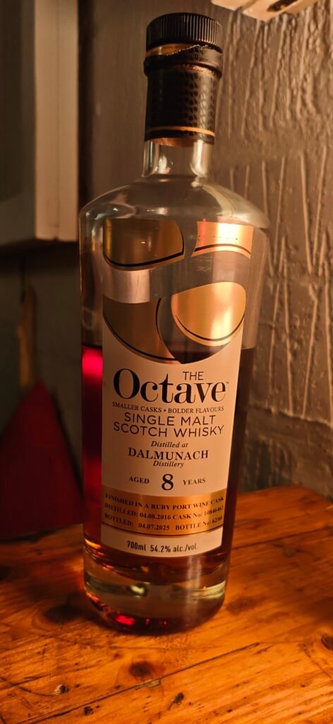 This particular bottle comes fresh from a ruby Port octave finish, which should be self-explanatory as to why I shortlisted it. As it was a tiny cask, there were only 66 bottles made available, so it’s something special in that sense as well. Dalmunach is a Speyside distillery built on the site of the lost Imperial distillery by Chivas Brothers (Pernod-Ricard). Mostly used in blends, it is finding fans through independent bottlings with a typical character of citrus & orchard fruits and gently nutty baking notes.