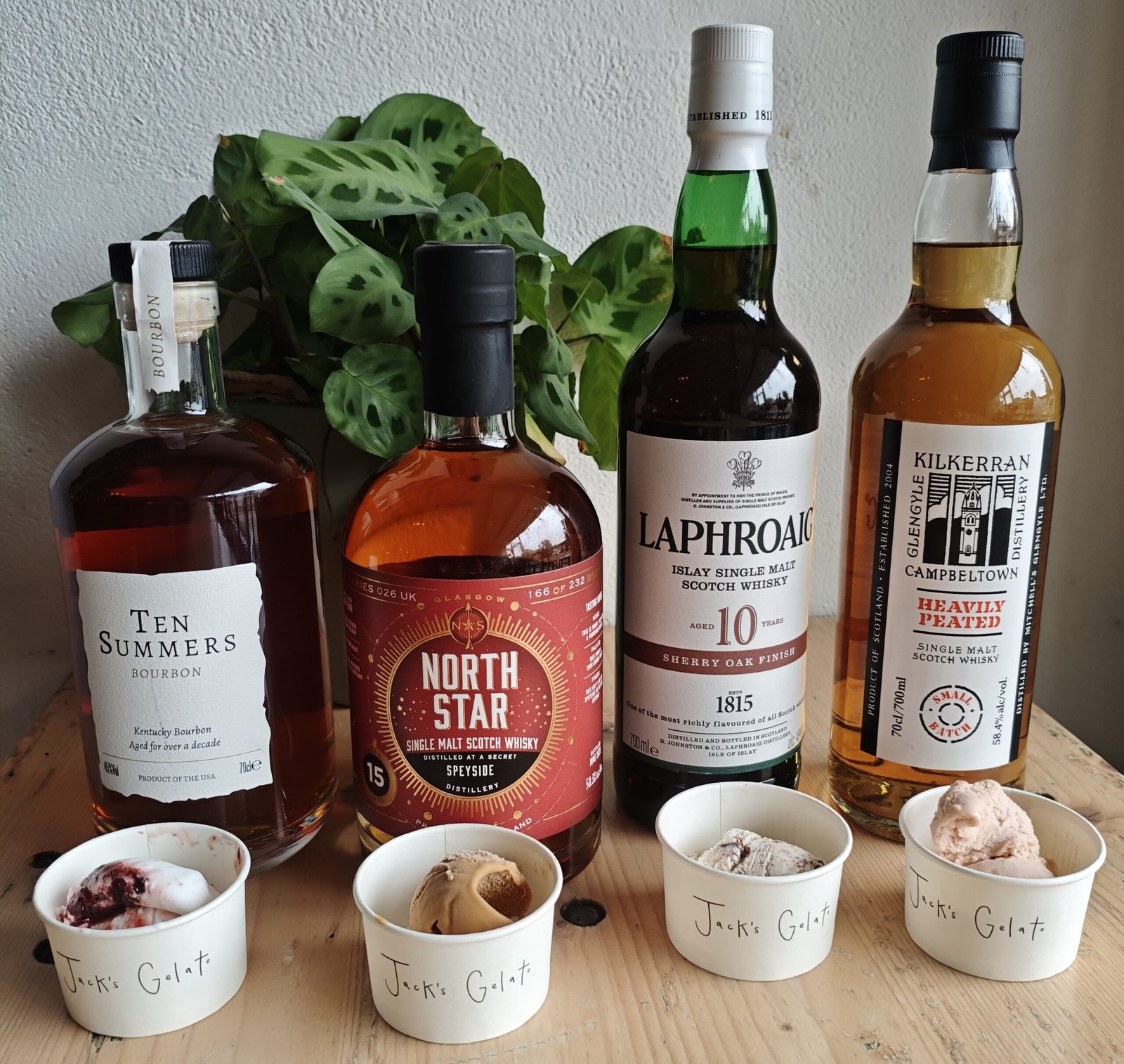 I had a rough idea of the boxes to tick to have an appealing, effective whisky lineup if we were going to be enjoying ice cream alongside it. So, I sent that to Jack with my rough idea of what flavours were going to be going on, and what I gingerly thought might work well, and then left it to him to spin his gears. A bit closer to the time, I confirmed with him some actual bottles, and he gave me the flavours he was thinking of. After an initial confusion on my part (I don’t speak Italian!), we were set with four interesting whiskies and four attractive ice creams.